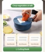 12-in-1Heavy-DutyManualFoodProcessorVegetableChopperwithHandle,LockSystem,BPA-FreeMulti-FunctionalSlicer/Shredder/Grater/DicerwithContainerEasyCleanSpace-SavingDesignKitchen,Carrots,Potatoes,Onions,Cucumbers,Fruits,VegetablesIdealHomeUse,CompactPortable,Durable,One-TouchOperation